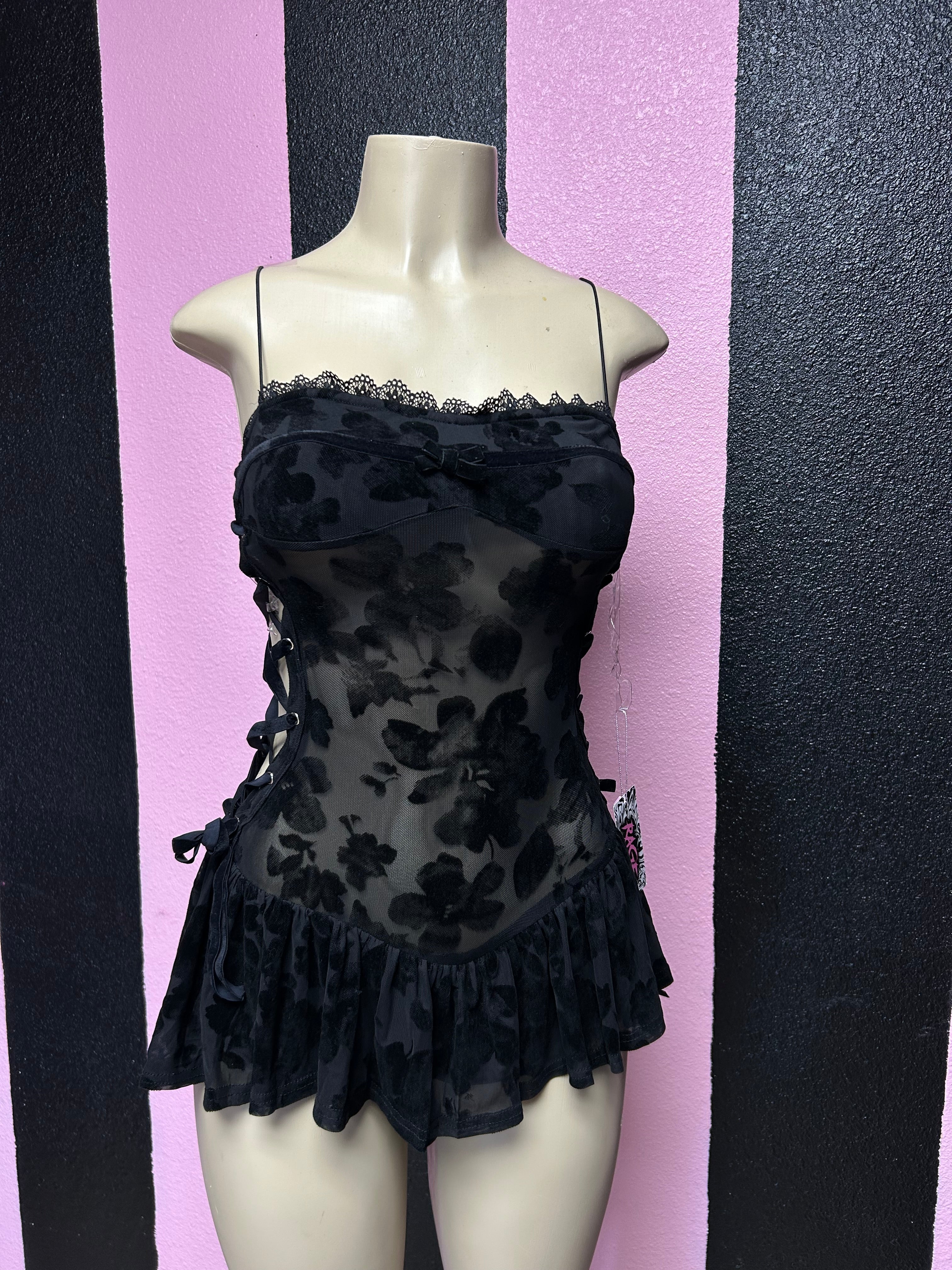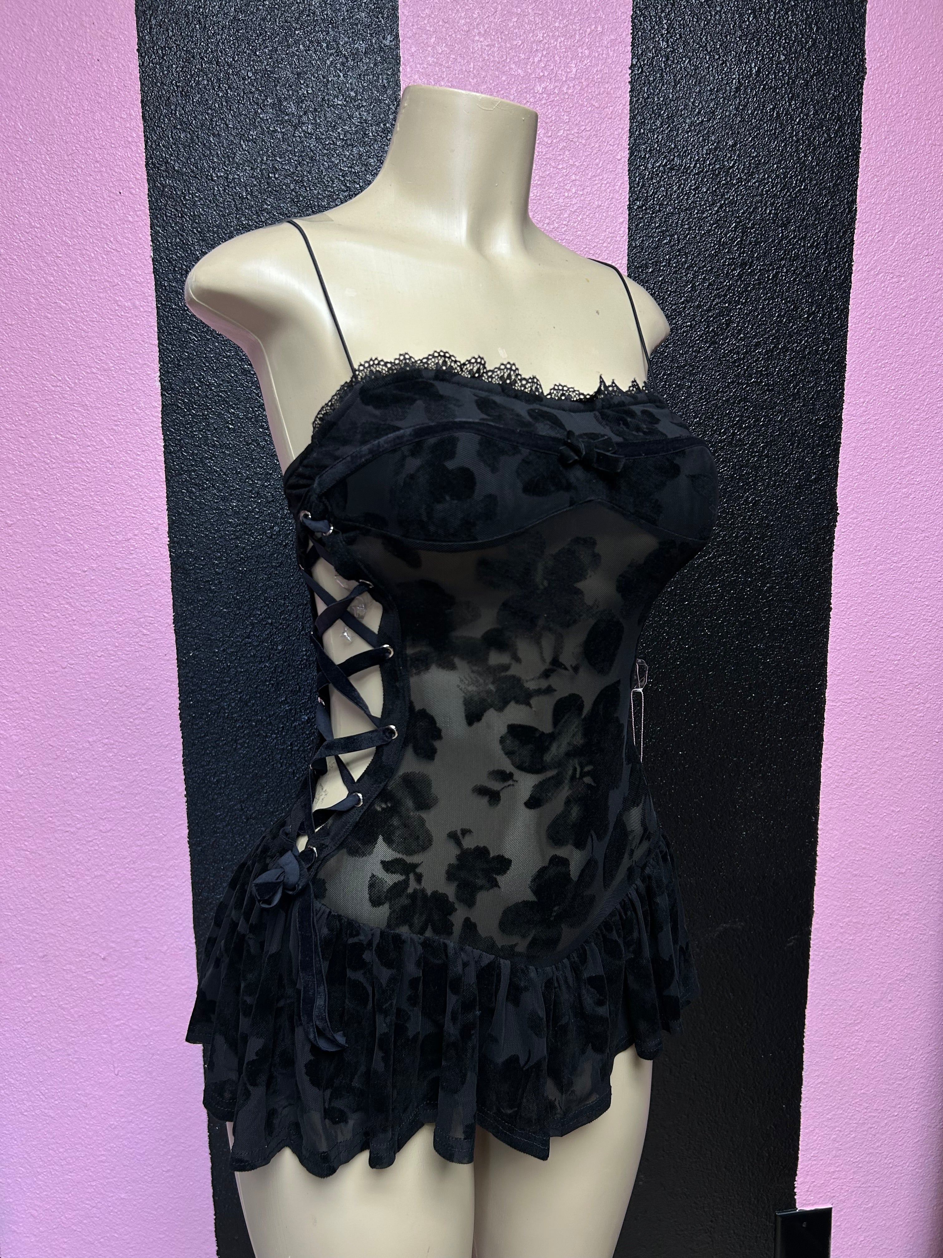 Beautiful dress with corset ties on sides and shorts attached.Â